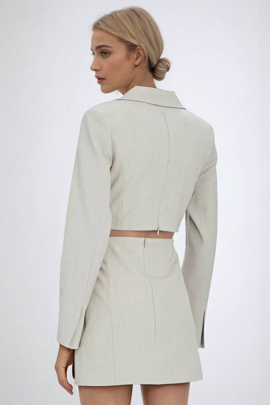 Cropped Blazer Jacket with Mini Skirt Overlay - Light Brown