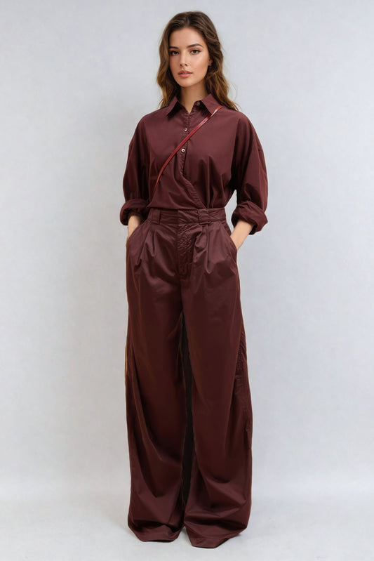 Wrap Button-Up Shirt with Asymmetric Detail - Burgundy