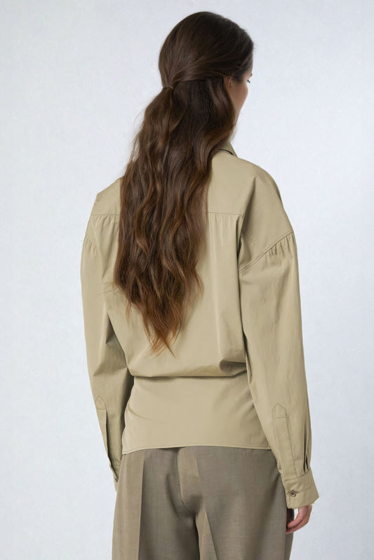 Wrap Button-Up Shirt with Asymmetric Detail - Khaki