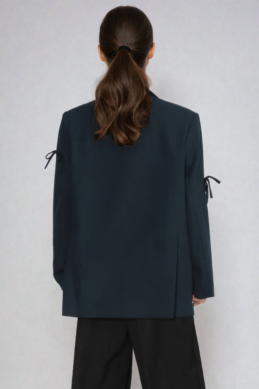 Oversized Blazer with Decorative Bow Accents - Dark Green