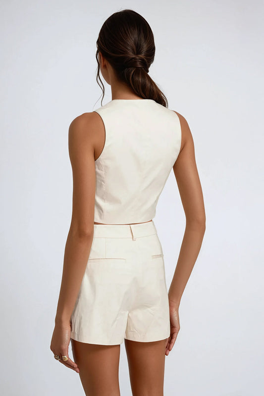 Two-Piece Set with Cropped Blazer and Mini Skirt - White