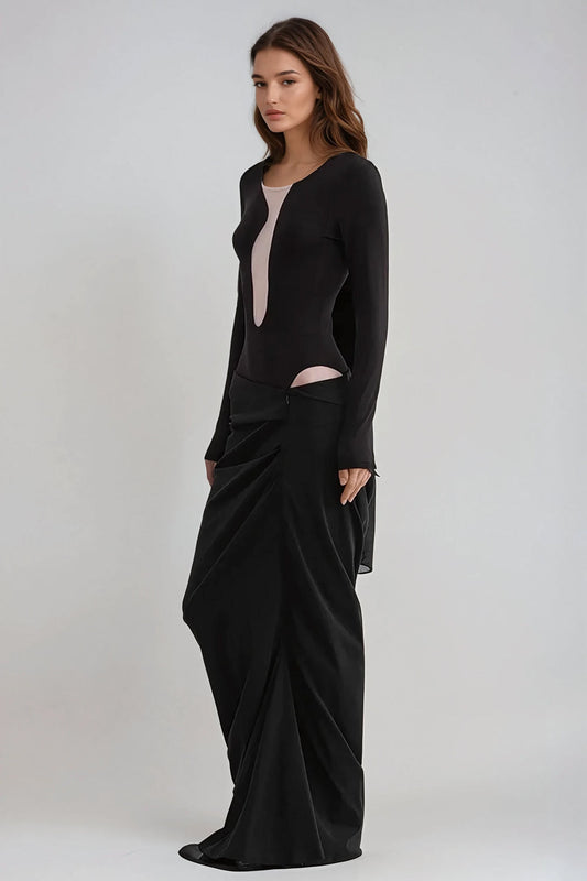 Long Sleeve High Neck Bodycon Maxi Dress - Black