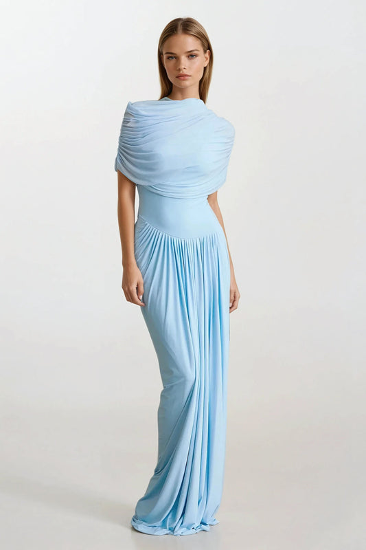 Draped Sleeves Asymmetrical Maxi Dress - Light Blue