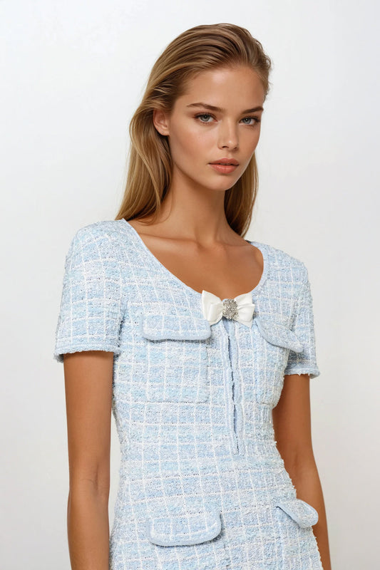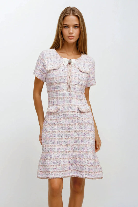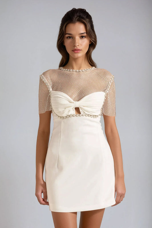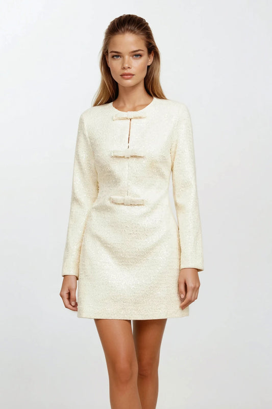 Bow Detail Sequin Long Sleeve Mini Dress - White