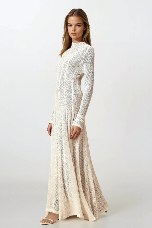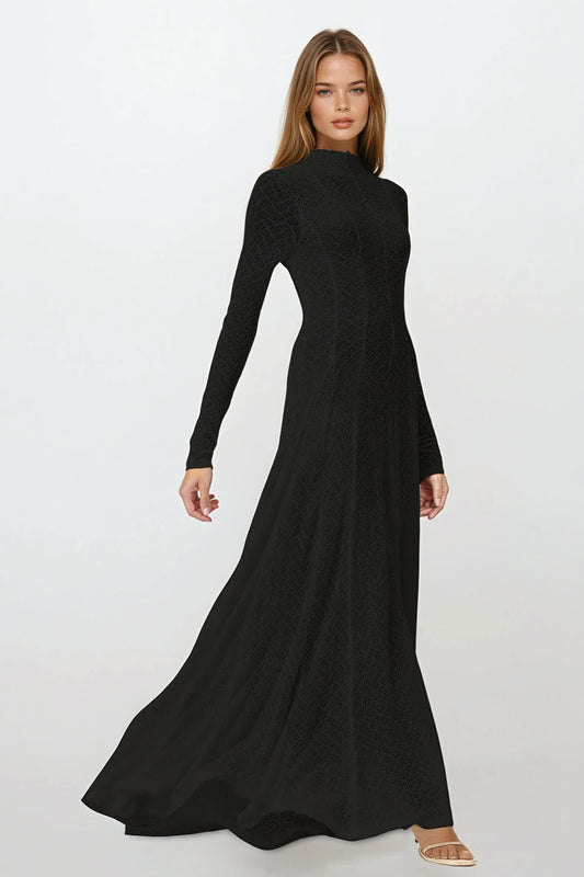 Long Sleeve High Neck Lace Maxi Dress - Black