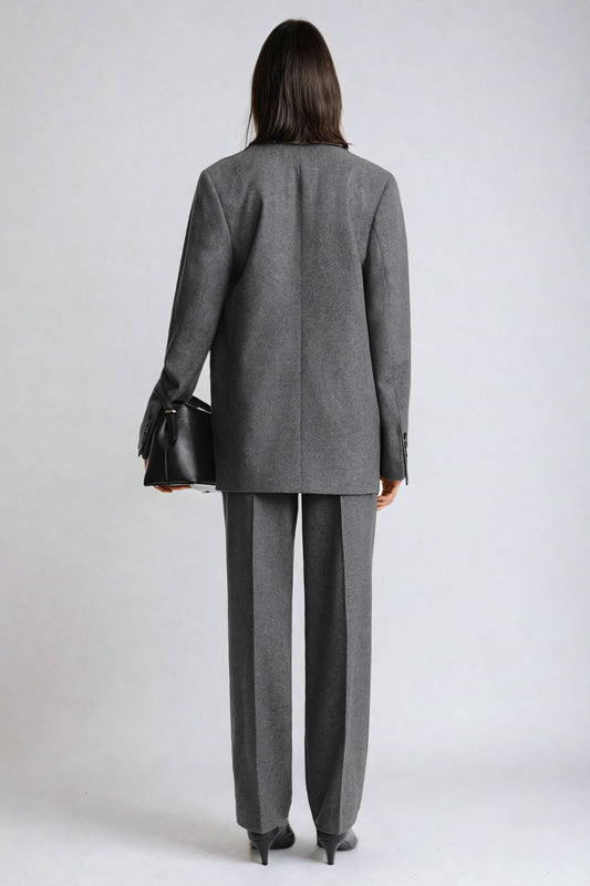 Classic Tailored Single-Breasted Blazer with Notched Lapel - Gray