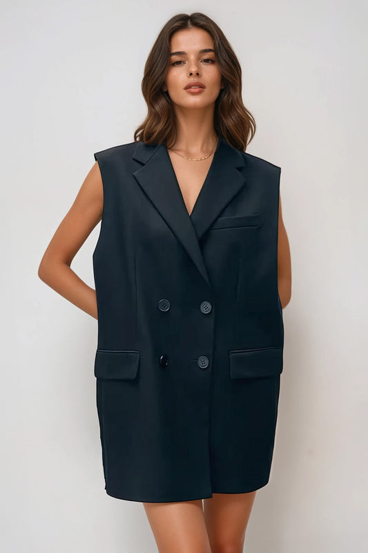 Sleeveless Blazer Dress with Back Bow - Black