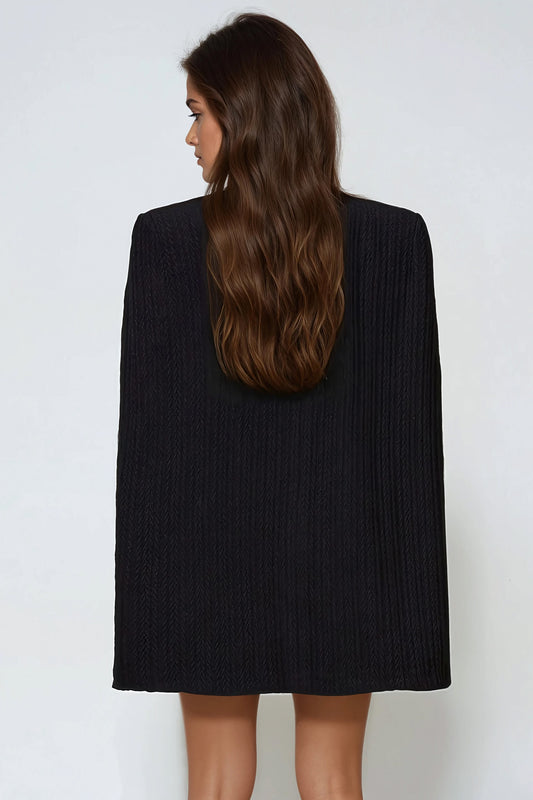Textured Blazer Cape and Dress Set - Black
