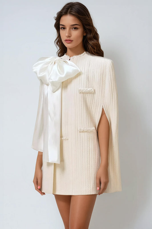 Textured Blazer Cape and Dress Set - Ivory