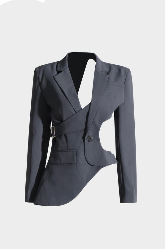 Asymmetric Blazer with Statement Cutouts - Gray