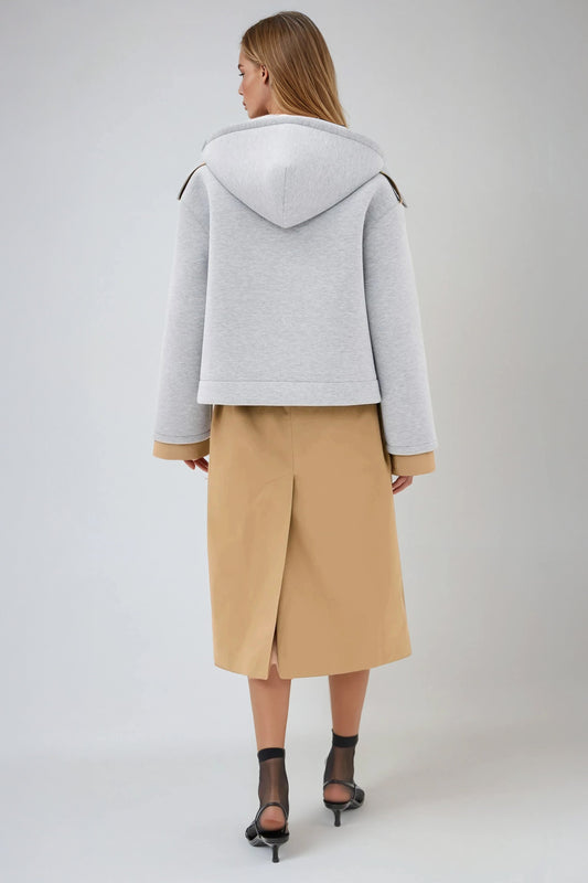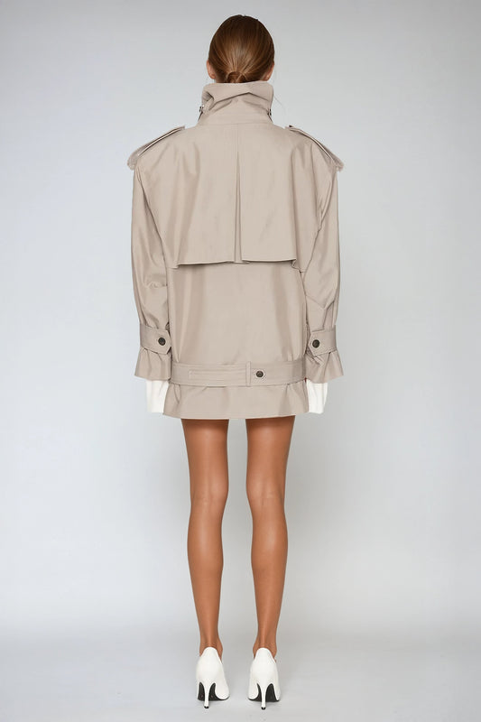 Trench Style Jacket with Hoodie Sleeves - Khaki