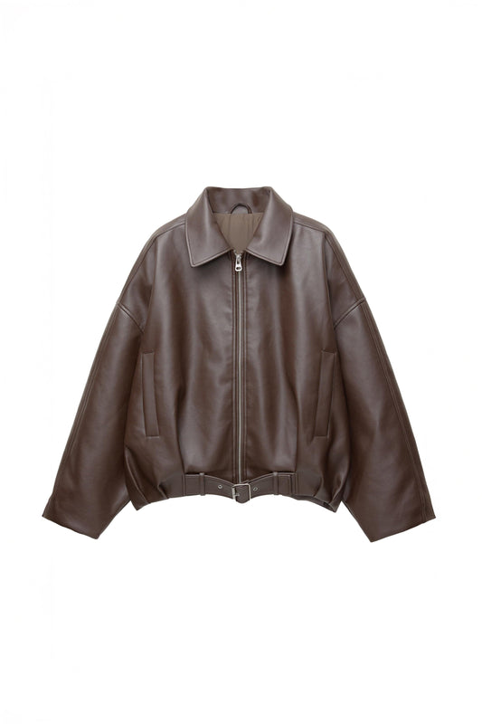 Zip-Up Jacket with Belt and Wide Sleeves - Brown