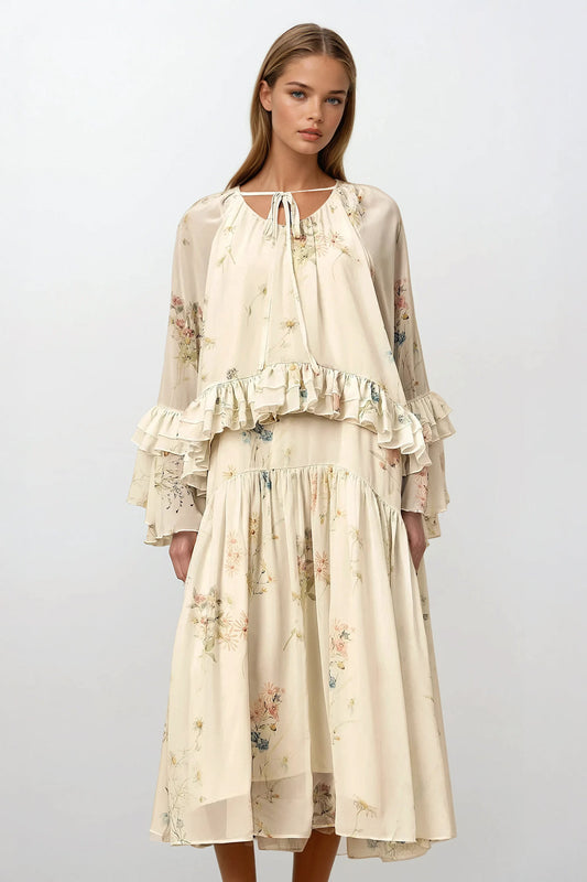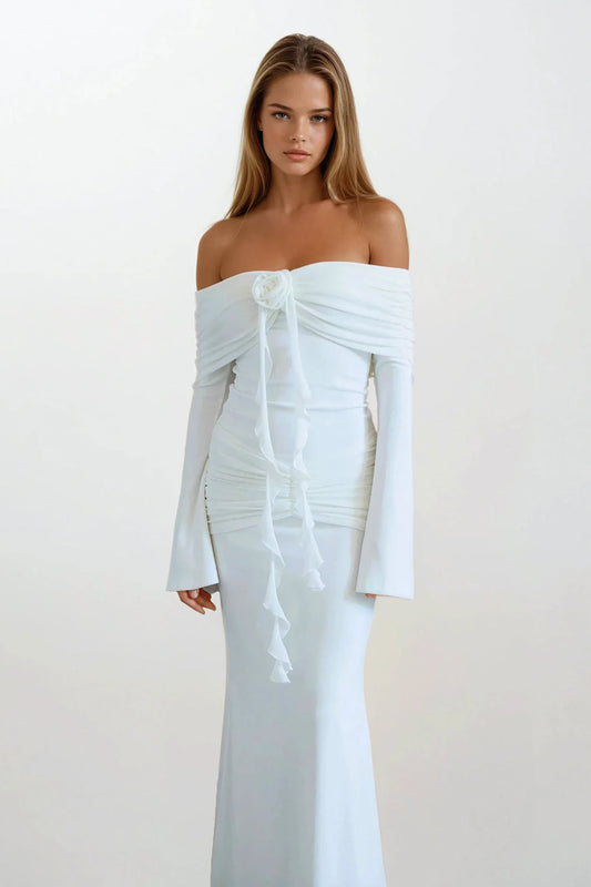 Sleeveless Maxi Dress and Ruffled Longsleeves Top - White