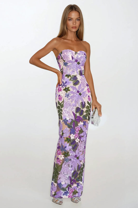 Long Sleeve High Neck Lace Maxi Dress - Black