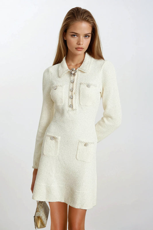 Sleeveless Mini Dress with Embellished Keyhole Detail - White