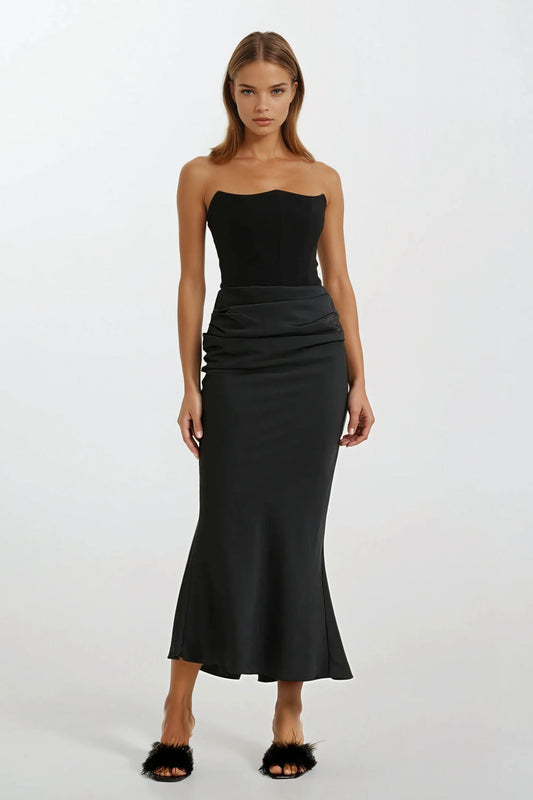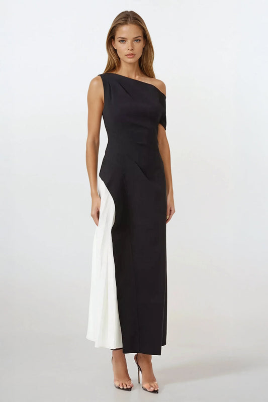 Asymmetrical Maxi Dress with Draped Panel - Black