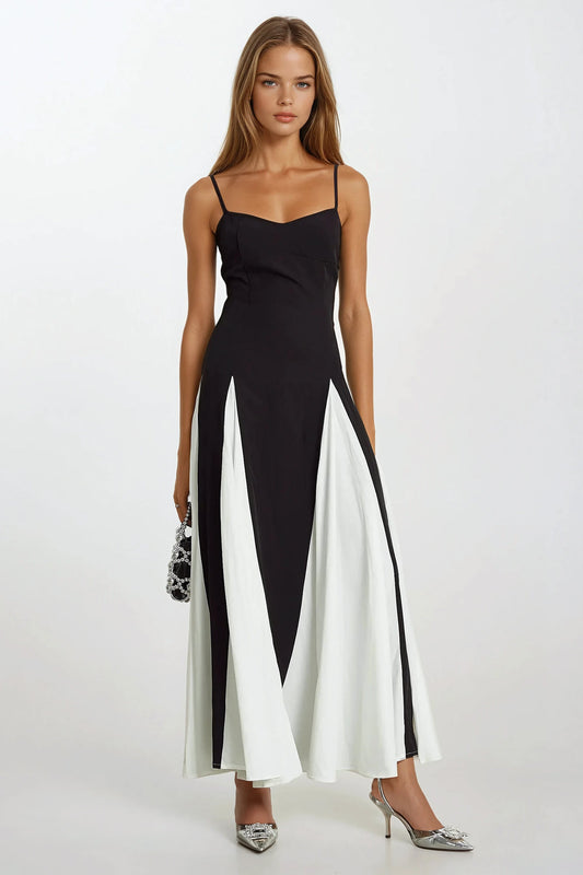 Asymmetrical Maxi Dress with Spaghetti Straps - Black