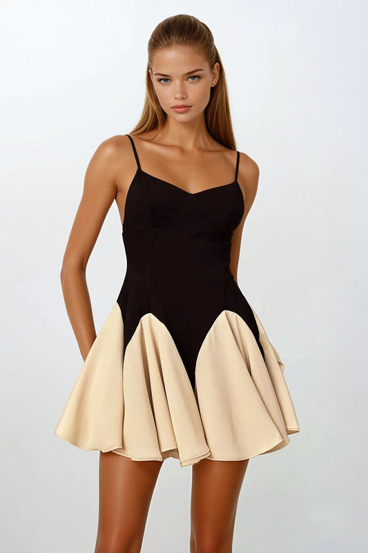 Spaghetti Strap Sweetheart Neck Mini Dress - Black