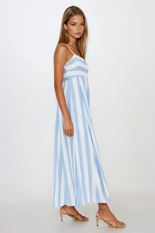 Spaghetti Strap Flared Denim Mini Dress - Navy