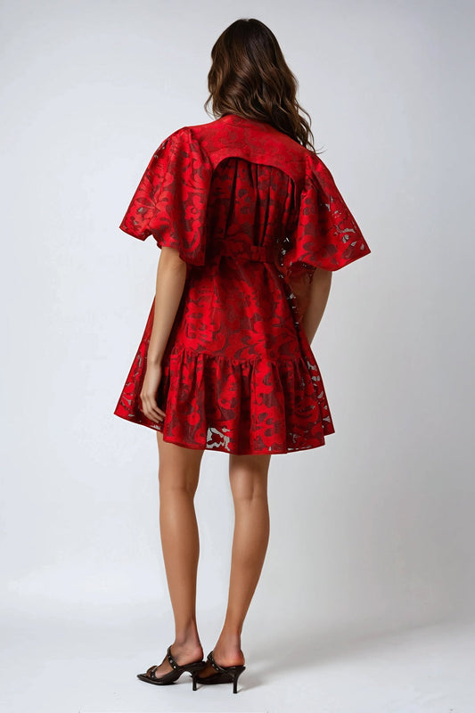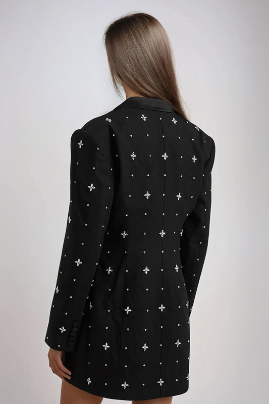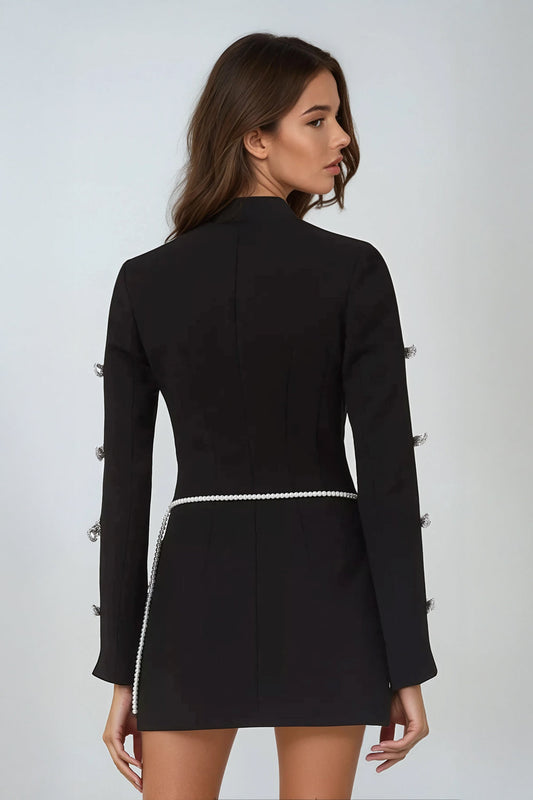 Blazer-Style Cutout Sleeve Mini Dress - Black