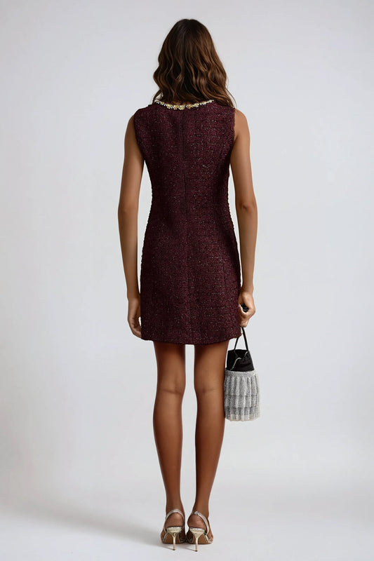 Sleeveless Mini Dress with Embellished Neckline - Purple