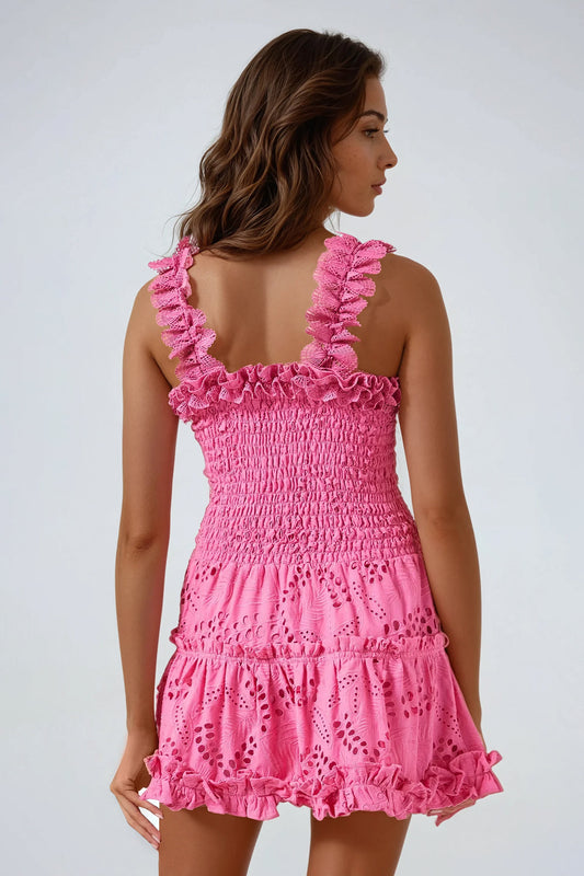 Sleeveless Mini Dress with Embellished Neckline - Pink