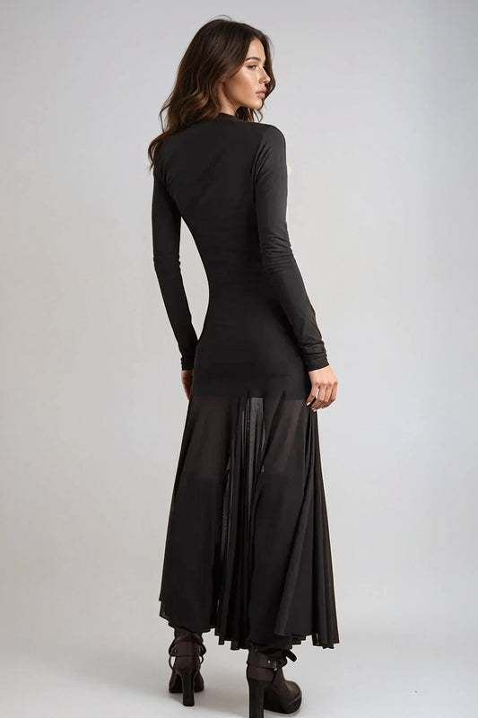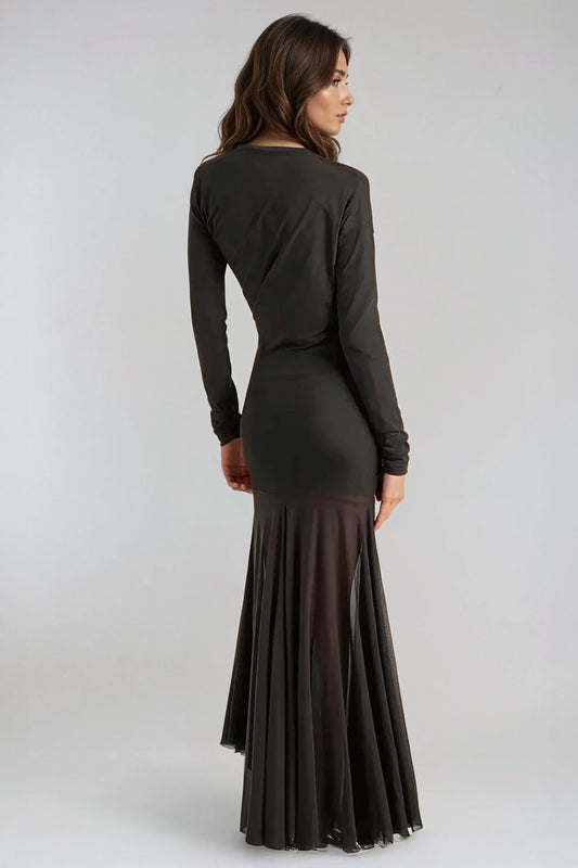 Sold outLong Sleeve Sheer Maxi Dress - Black