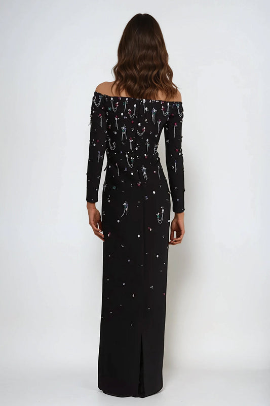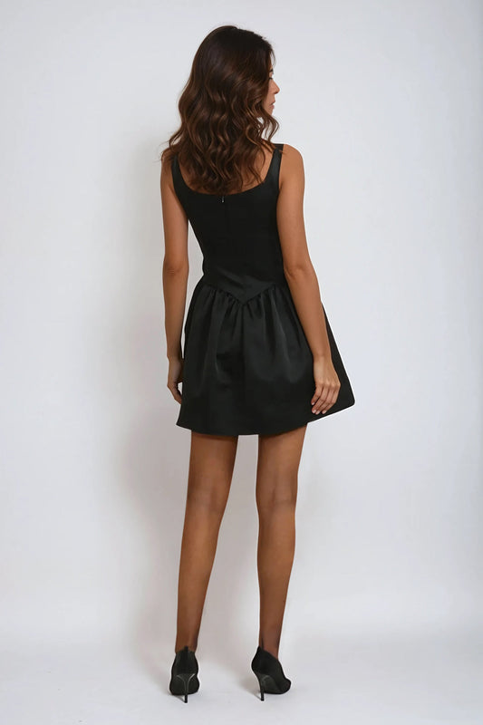 Long Sleeve Embellished Square Neck Mini Dress - Black