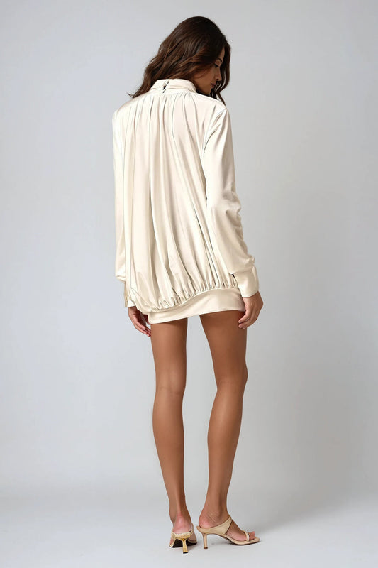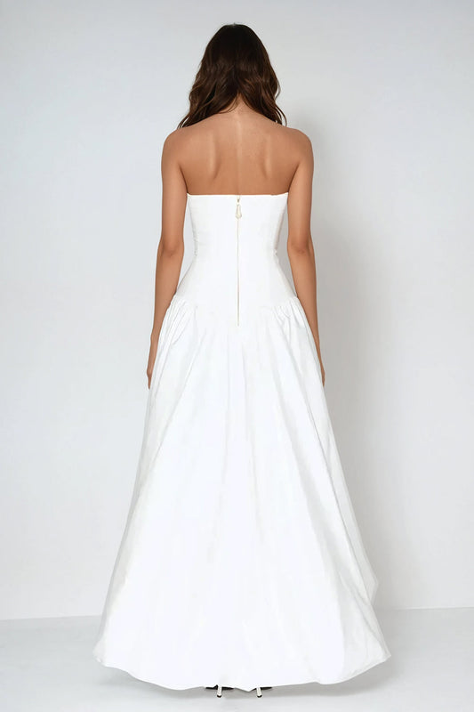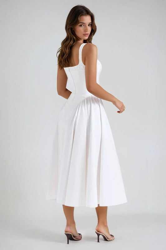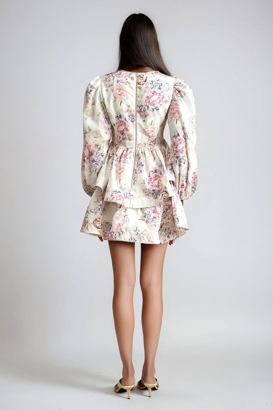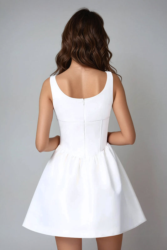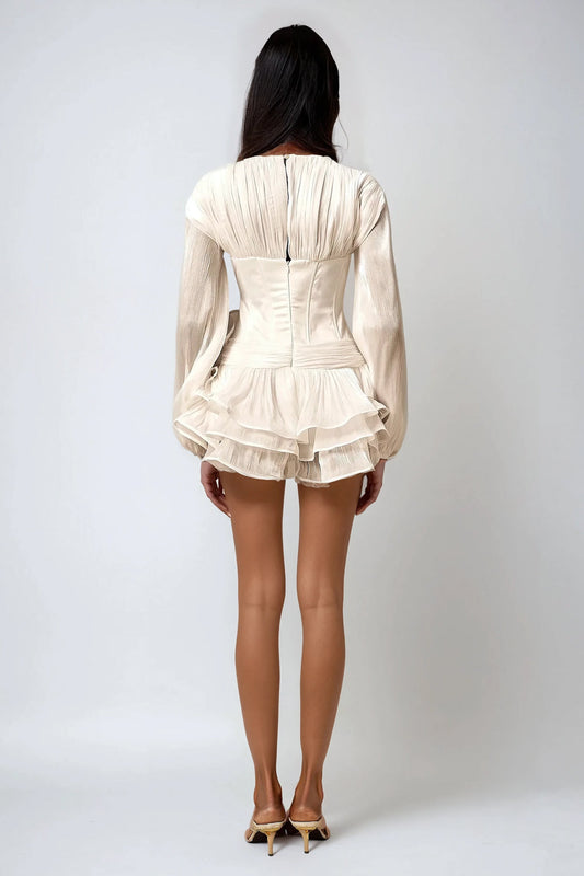 Deep V-Neckline Mini Dress with Layered Ruffle Skirt - White