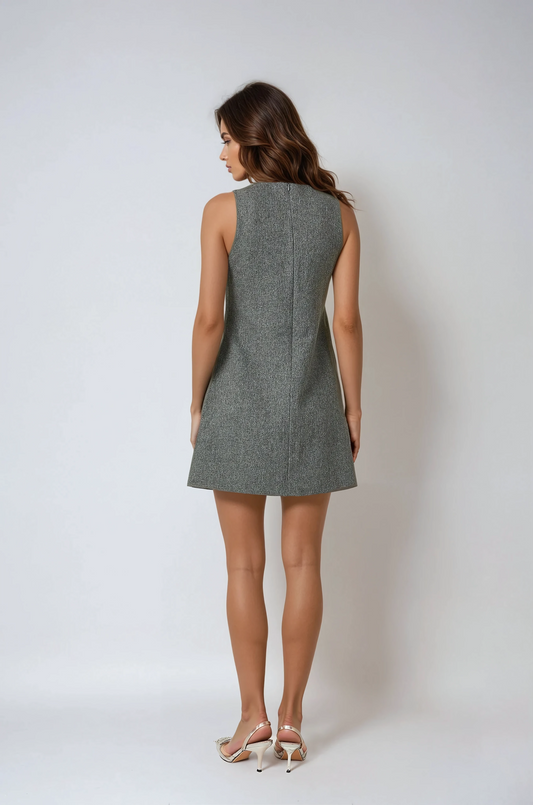 Sleeveless Mini Dress with Floral Embellishments - Gray