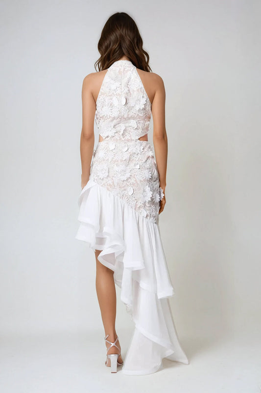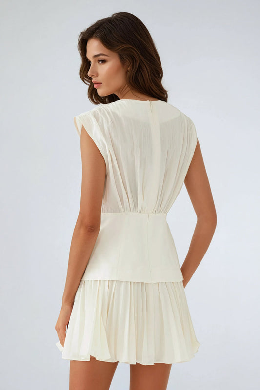 Mini Dress with Deep V-Neckline and Corset Waist - White