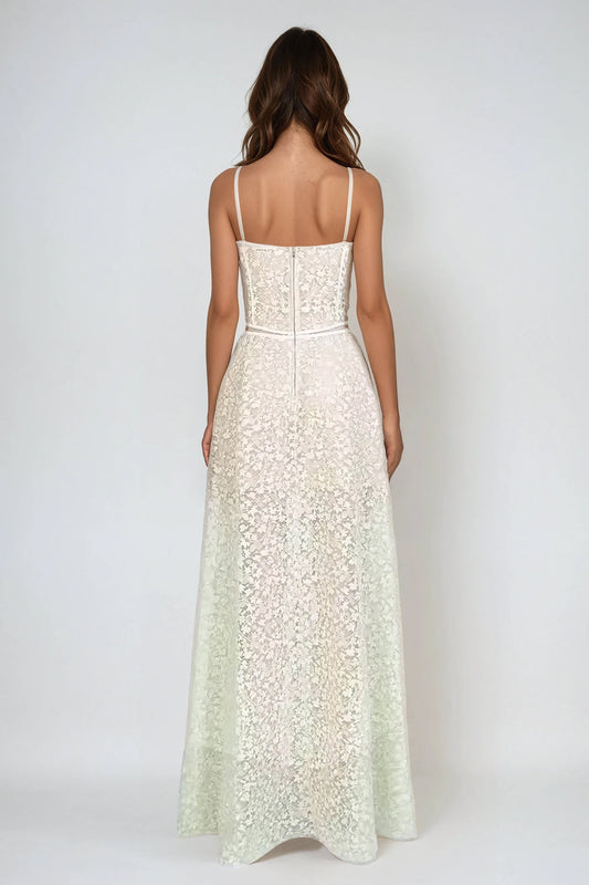 Lace Corset Maxi Dress with Spaghetti Straps - Green