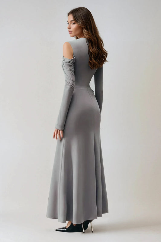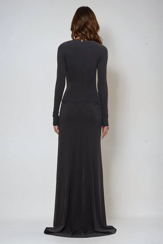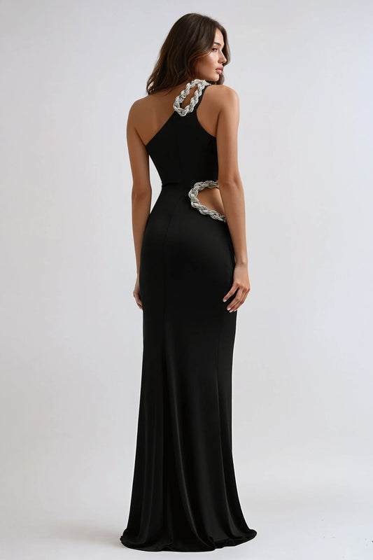 Asymmetrical Maxi Dress with Crystal-Embellished Cutouts - Black