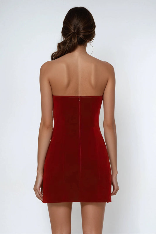 Strapless Velvet Mini Dress with Embellished Details - Black