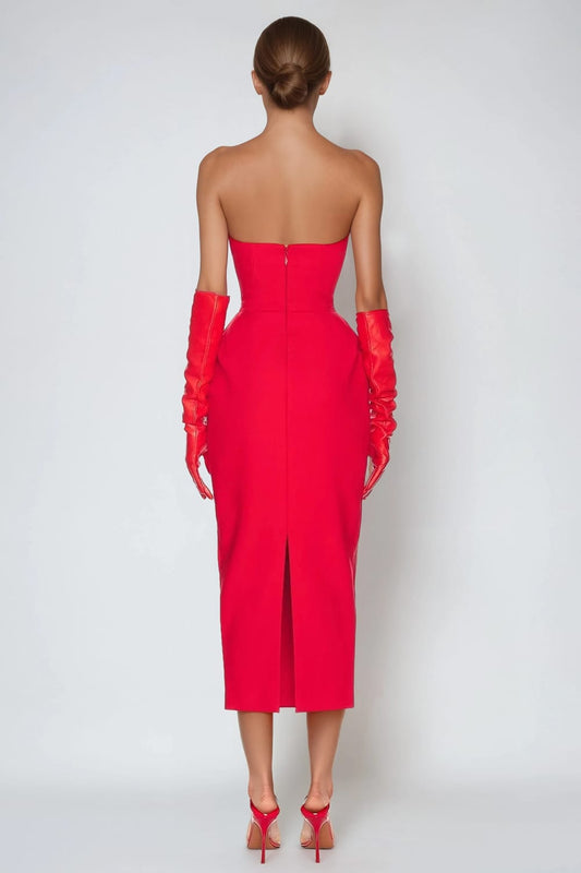 Contrast Panel High Neck Long Sleeve Maxi Dress - Red