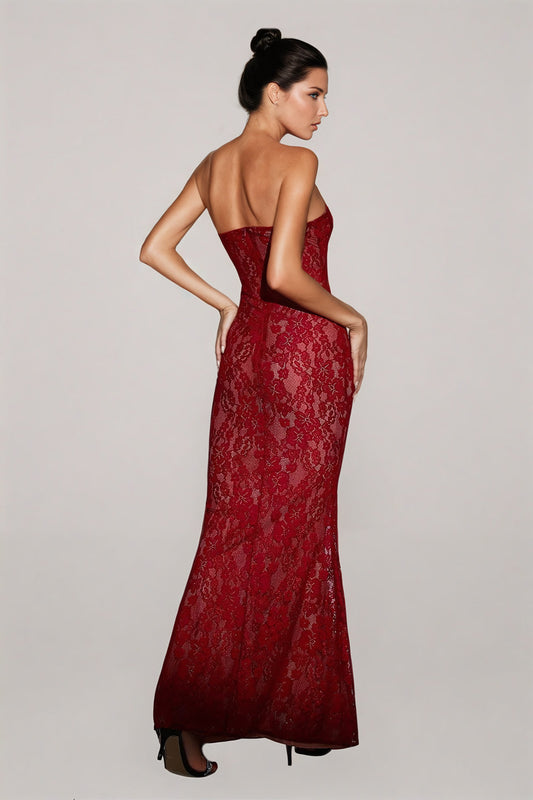 Halter Lace Maxi Dress with Bow Accent - Burgundy