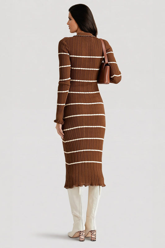 Striped Button-Front Midi Dress - Brown