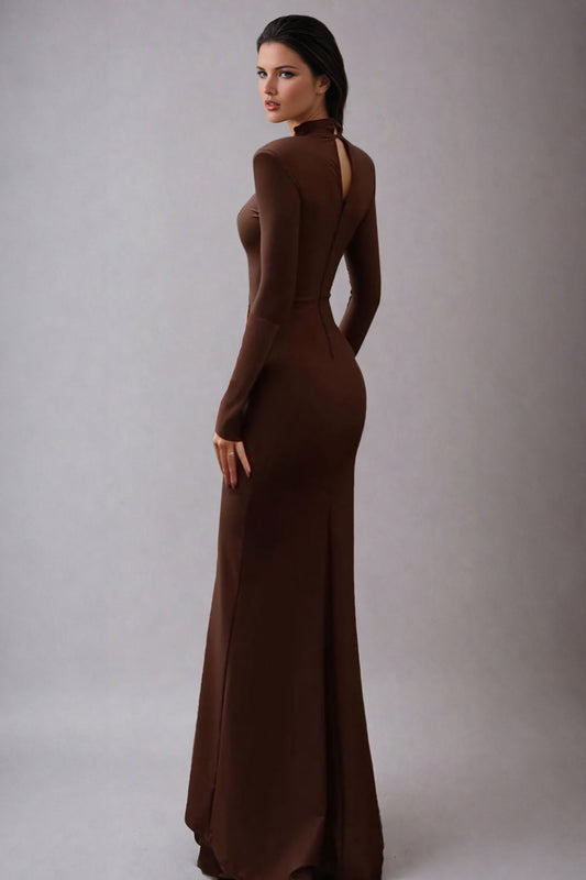 Turtleneck Long Sleeve Maxi Dress - Brown