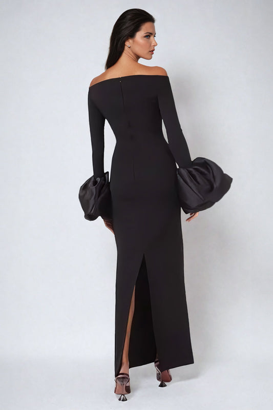 Off-Shoulder Maxi Dress with Oversized Cuff Detail - Black