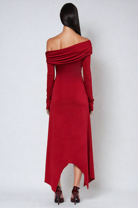 Twist-Front Off-Shoulder Maxi Dress - Red
