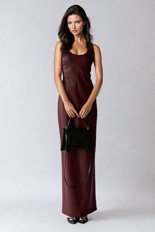 Structured Leather Maxi Dress - Burgundy