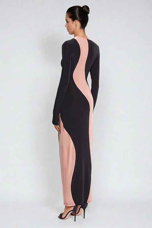 Asymmetrical Pattern Longsleeves Maxi Dress - Black
