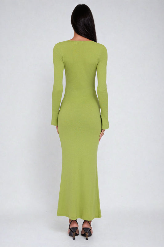 V-Neck Maxi Dress with Chain Detail - Green