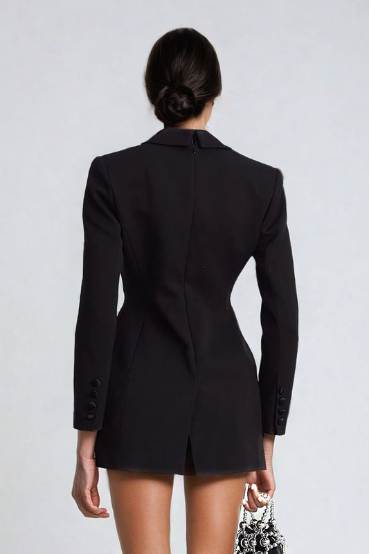 Blazer Style Mini Dress with Deep V-Neck - Black