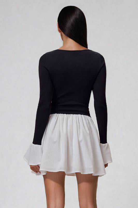 Ruffle Cuff Knit Mini Dress - Black