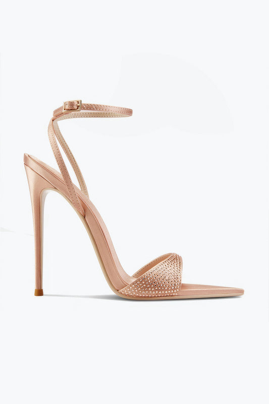 Stiletto Sandals with Chain Braided Strap and Ankle Buckle - Apricot