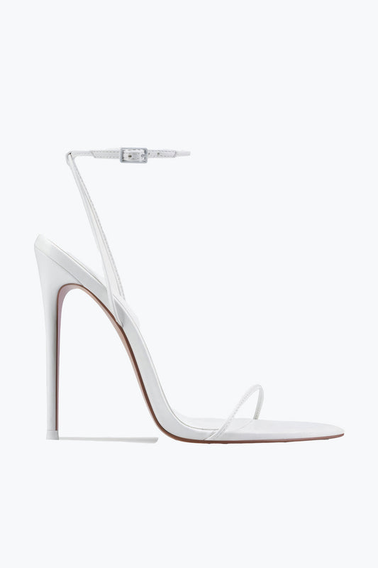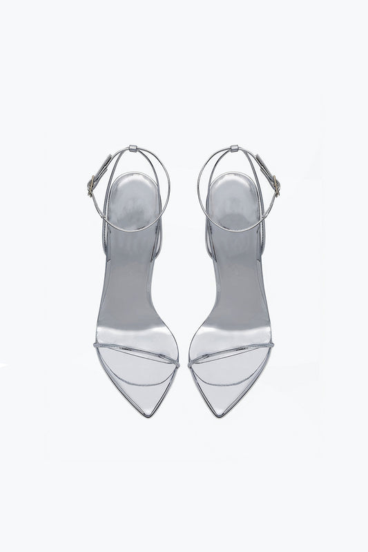 Stiletto Heel Sandals with Spiral Rhinestone Straps - Silver