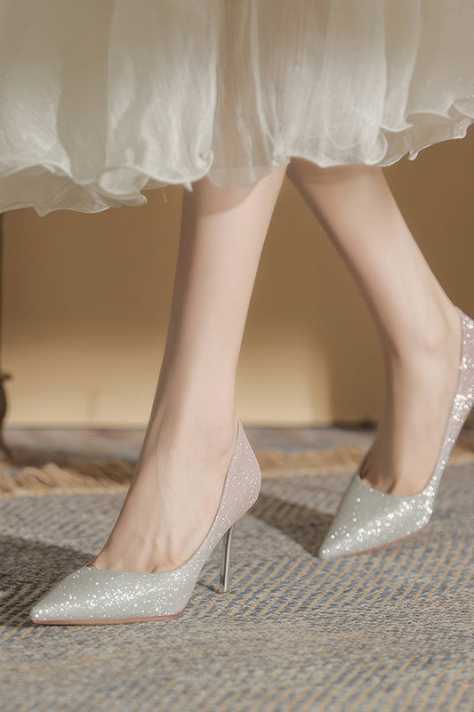 Gradient Sparkle Pointed Heels with Stiletto Heel - Pink