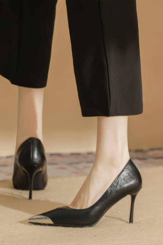 Pointed-Toe Heels with Gold Detail and High Heel - Apricot
