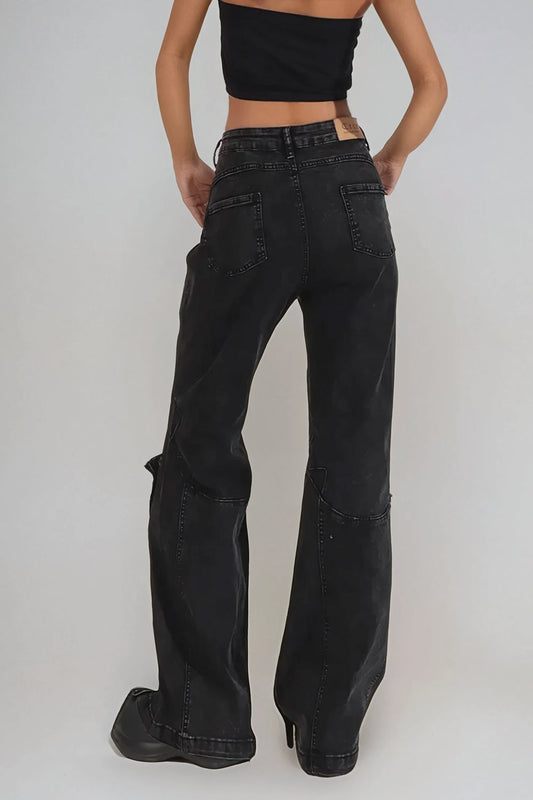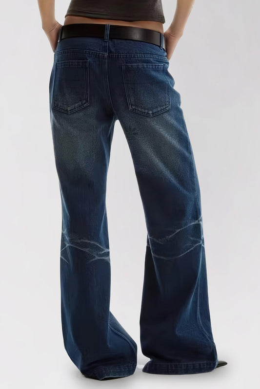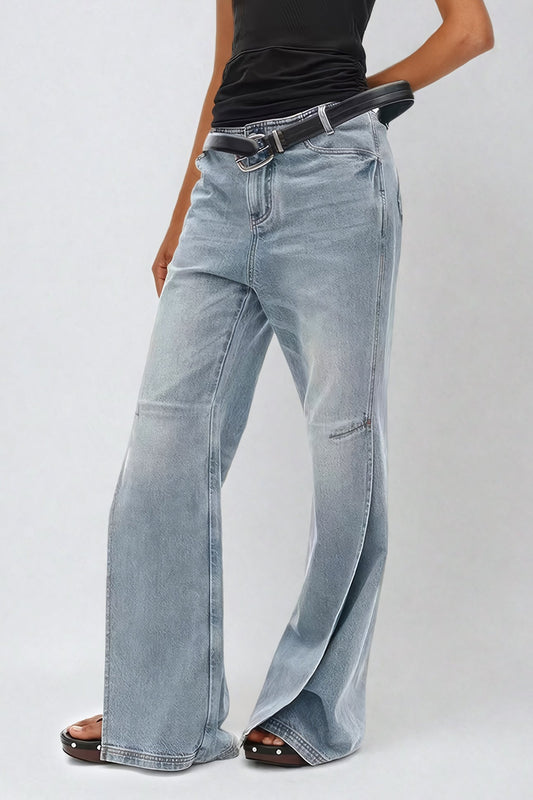 Flared Wide-Leg Jeans with Seam Detailing - Blue